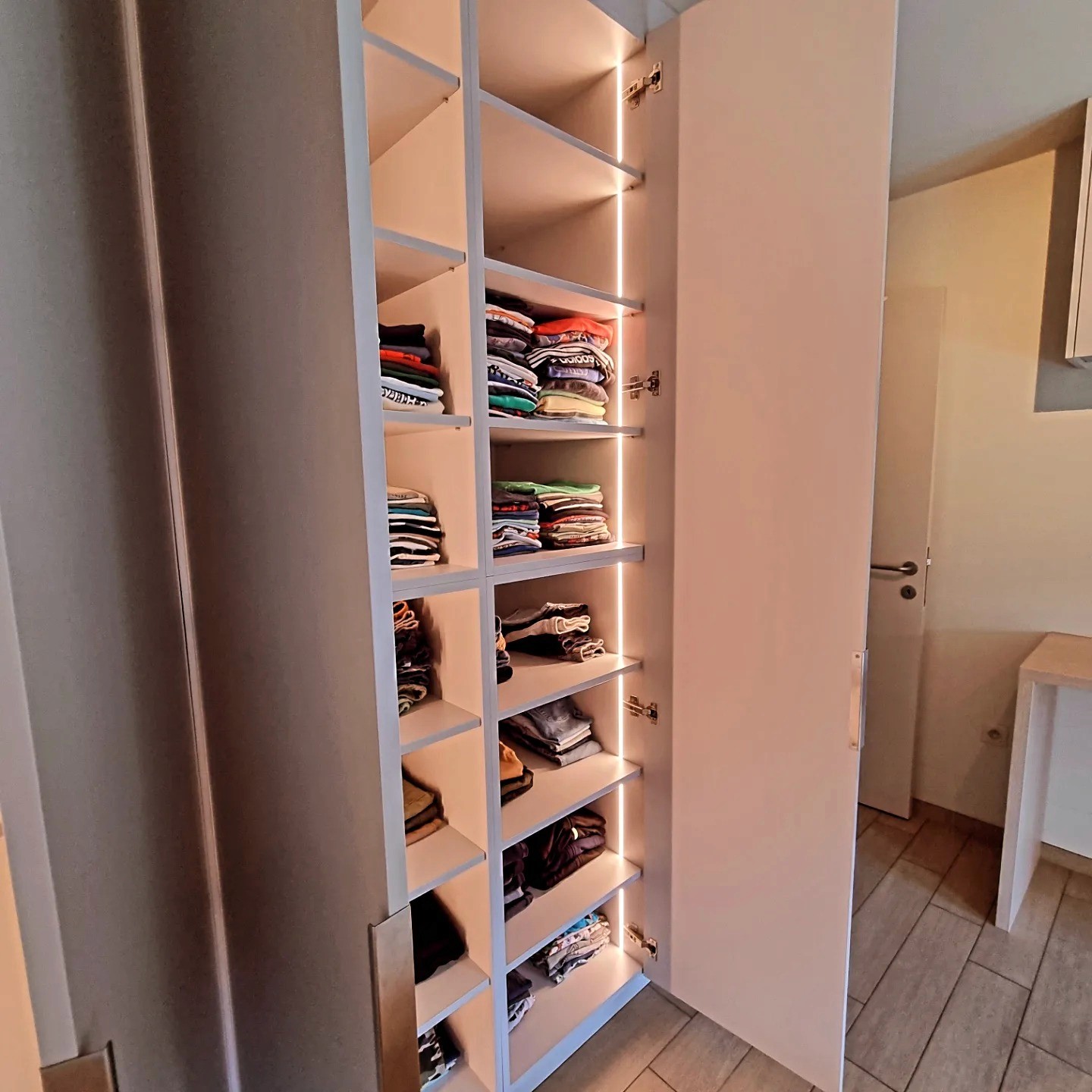 DK Maatwerk BV combineert vakmanschap met een doordachte aanpak. We realiseren maatkasten, dressings, badkamer- en tv-meubels, telkens met aandacht voor functionaliteit, detail en een strak eindresultaat.